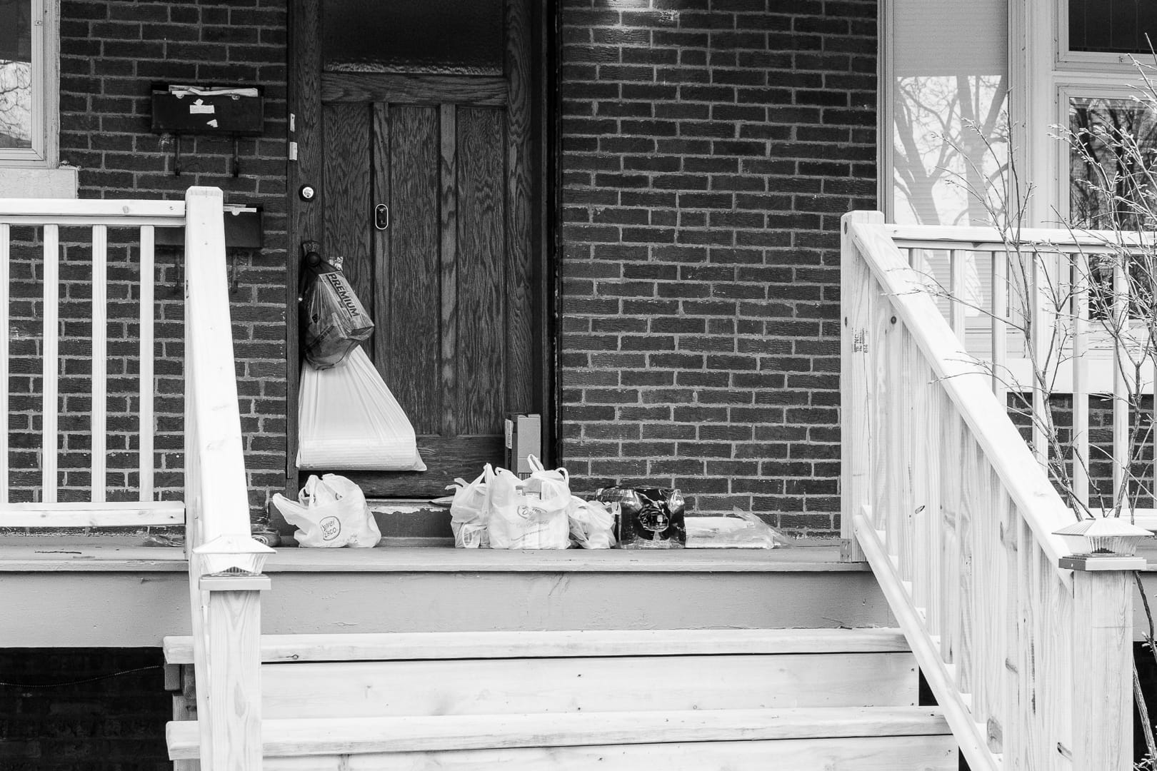 2020: Groceries at the Door. Taken on Oak Park Ave between Cermak and Roosevelt in Berwyn, IL. There are a lot of different reasons why groceries could be waiting at the door. Friends and family members deliver groceries to people who are at higher risk. Other people choose to have their groceries delivered by instacart or other services. This is an increasing common sight.2018: Wild day on the Lake. Taken at the Lakefront just south of Foster in Chicago. Rain, high winds, and 38 degree temperatures didn’t make me want to go look for photos. So when I went to hear Cecile Richards speak at Senn HS, I had only taken a few from the car. While I was walking into the auditorium, I spoke to a woman and we both complained about the weather, but she said the Lake was something. So after the talk, I went to Foster. It was so windy with rain and spray, that I could barely stand there and take photos even with a hat and gloves, but the ones I took when my lens was not all wet were great. And to think that I hope to be out there paddling very soon.2016: #Fight for 15. Taken at the Fight for 15 Action near Ontario and Clark in Chicago 2012: Waiting to drive the bus. Taken at Clark and Foster