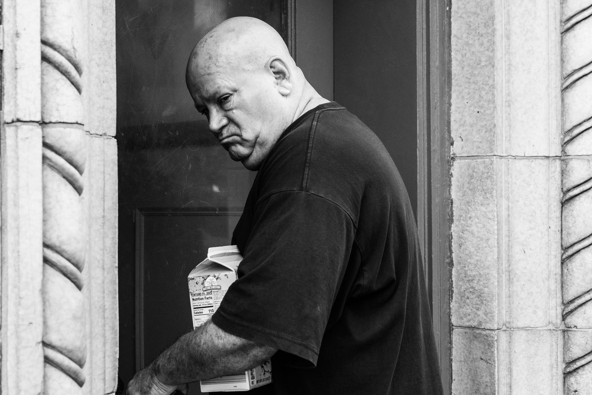 The door to the dry cleaners was open and the light was just right. When he turned, I was able to get this photo.