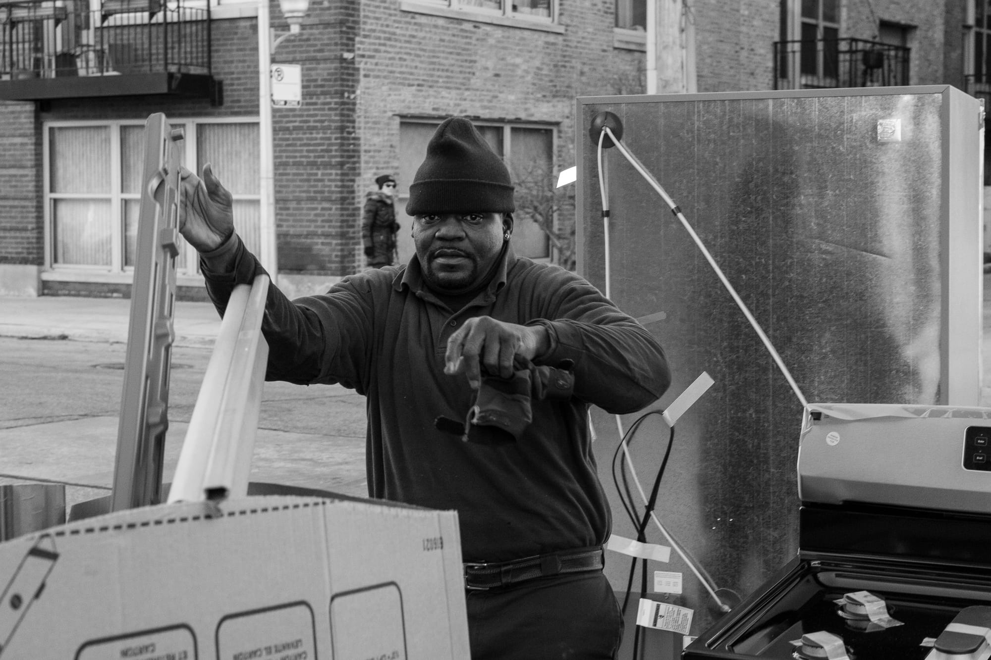 I would love to finish the year with strong, good photos. But then there are days like today when it is 40 degrees out and it pours all day. I made myself venture out and even took the car so I could get a photo. But no one else wanted to be out today either in the wind and the rain. I walked a couple of blocks in Albany Park in search of something and Dulce De Leche Cafe had just closed and someone was under the table sweeping the floor.