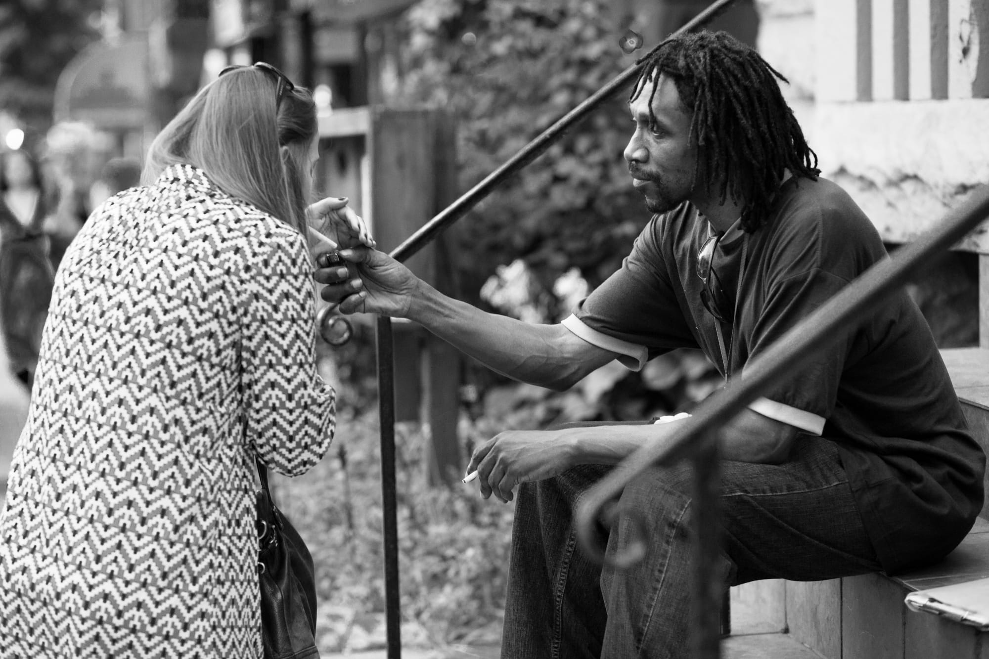 2020: Black Lives Matter in Evanston too. Taken at Lighthouse Beach off Sheridan Road north of Northwestern University in Evanston, IL. I joined a protest in Evanston that occurred in response to an incident on the beach there. A couple put a large confederate flag beach towel on a fence where they were sitting, and it was ignored by most of the people on the beach - who were White, because it was mostly white people who felt welcome at Lighthouse Beach. It wasn’t until some Black activists were alerted that the racist flag displaying beach goers were confronted. At this protest the racism in Evanston was called out.2018: Once a church. Taken on Chestnut Street and 3rd Ave in Cambria City, Johnstown, PA. At a used bookstore, I struck up a conversation with two women who told me that I should check at the music at VOMA (Venue of Merging Arts) in Cambria City. I couldn’t make it, but I asked my sister about it. She told me that she thought it was in the building where we used to go to Church. So when I was on my way out of town, I couldn’t resist stopping by to check it out. It definitely was St. George Serbian Orthodox Church where I spent many Sundays. It was kind of perfect that this car was in front since it looks like it was also around when it was a church.2016: Paddling at Pyramid Pt. Take on Lake Michigan just off of Pyramid Point in Sleeping Bear National Lakeshore in Leelanua County, MI 2012: Do you have a light? Taken on Connecticut Ave. north of Dupont Circle in Washington DC.