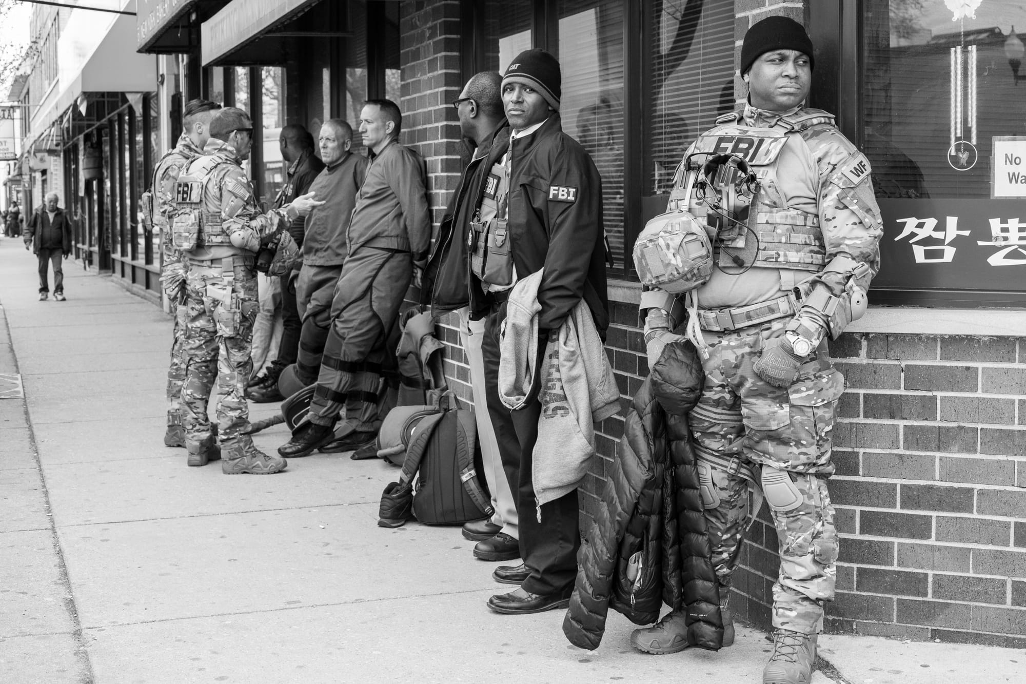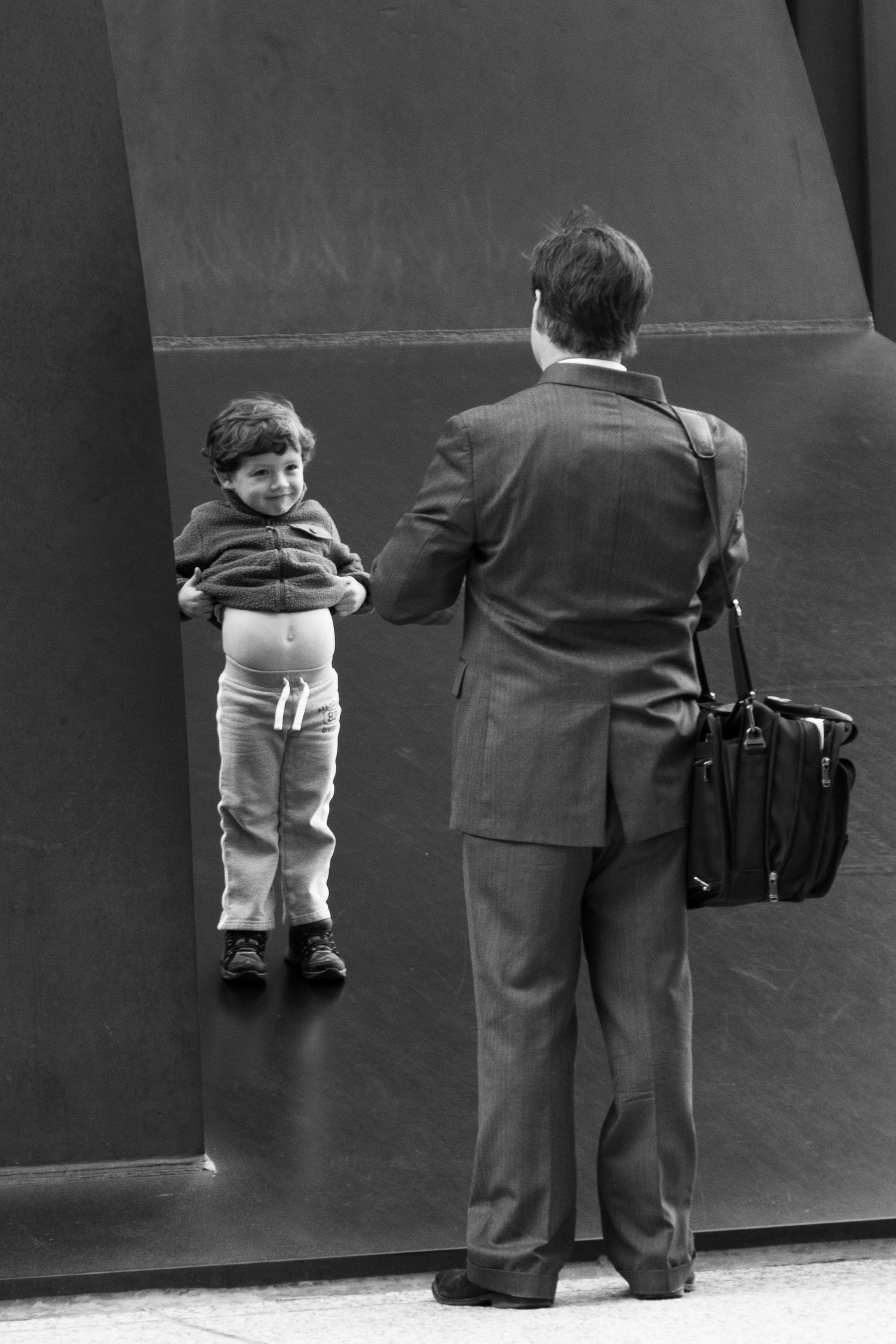 2020: Doing Laundry is Essential. Taken on Oak Park Ave. just south of the Eisenhower Expressway in Oak Park, IL 2018: Thankfully, only a movie. Taken on Lawrence and Bernard just west of Kimball in Chicago. They were shooting a film today on Lawrence, and filming a TV show or movie is quite a production. There were 4 or 5 big trucks, a crane to shoot from high, police to manage traffic, a lunch truck to feed everyone, and lots of tech people and actors and extras -- including these. My first reaction of course is that it was really cool. I didn’t know anything about the show, and only learned later that it is the pilot for a FOX TV show. But it was clear that it was some kind of FBI SWAT team drama since there were a lot of people dressed in those kinds of uniforms. And I realized that they had used a storefront on Bernard and put up a sign indicating that it was a Muslim center. And sure enough when I looked it up I saw that it is the pilot for a show about an FBI agent investigating a domestic terrorism threat. But that got me thinking that in these times, there is nothing that is not somehow political. And I wondered about how people that live in our community – particularly Muslims – might feel about the show being filmed here. And I wondered if all the immigrants who live here, including many who are living in fear of ICE or deportation, might feel about having all those men in uniform. Because even if they were not real, they certainly looked real. So then it didn’t feel so cool any more.2016:They know what to do at 6am. Taken in Terminal 1 at O’Hare Airport in Chicago 2012:Look at me, Dad. Taken at Daley Plaza on Washington St.