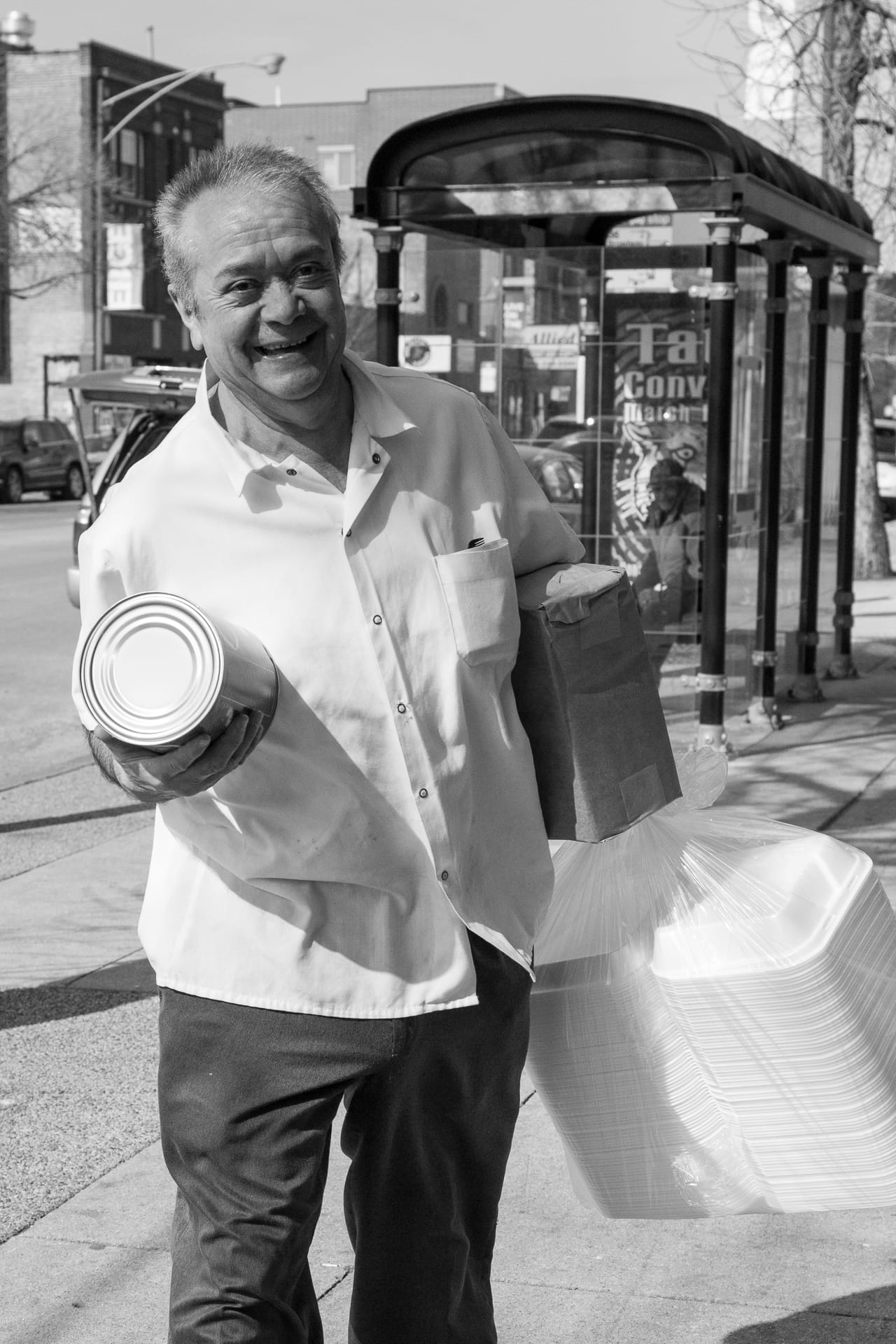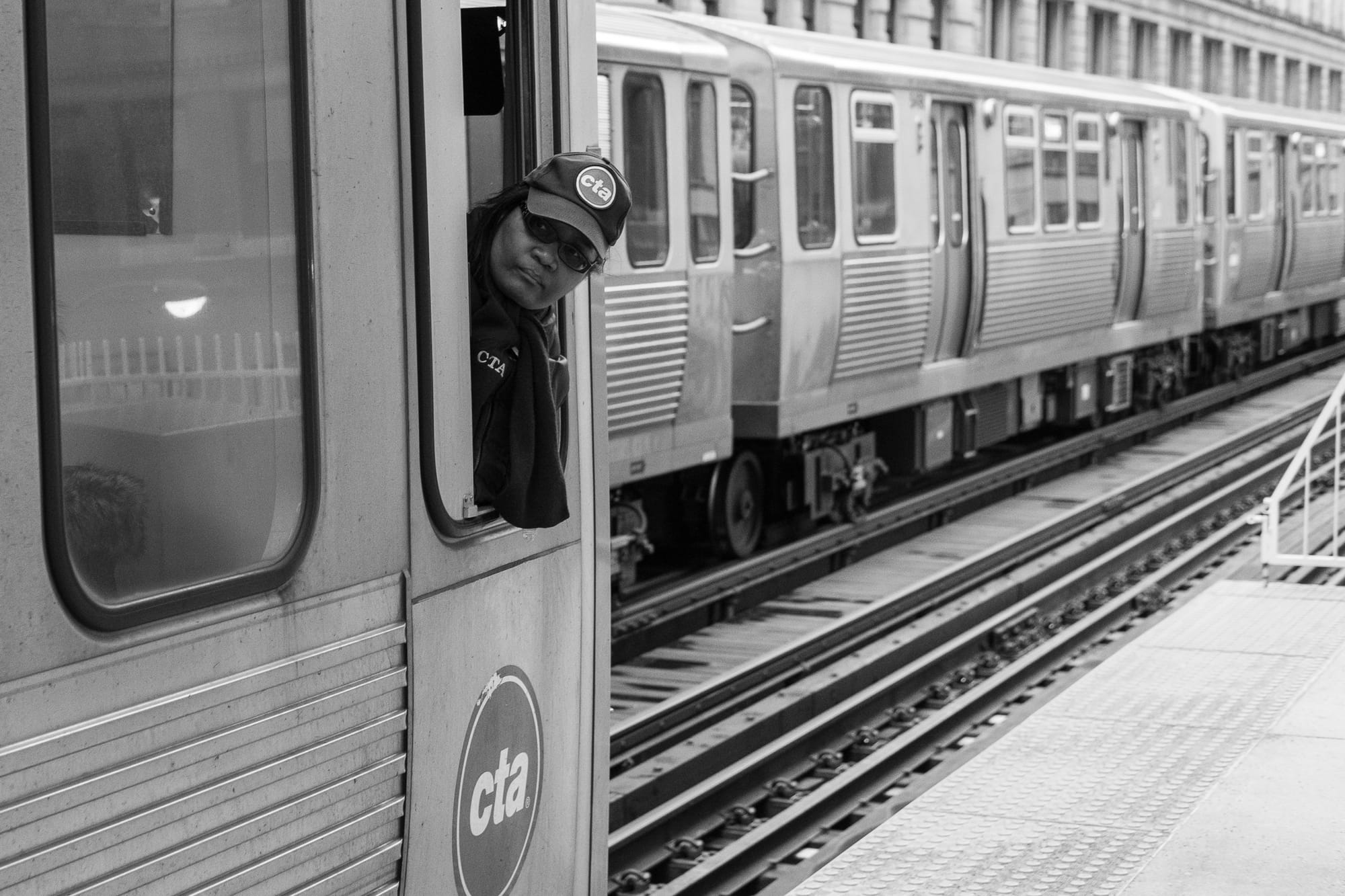 2020: Watch the cat with the wine. Taken on Hamlin Ave. just north of Lawrence Ave in Chicago.2018: Two trains and a conductor. Taken at the Madison Wabash CTA stop2016: Maybe it’s the weather that’s making him smile. Taken on Broadway between Bryn Mawr and Thorndale in Chicago 2012: Opening up in the morning. Taken on Lawrence Ave between Hamlin and Kimball.