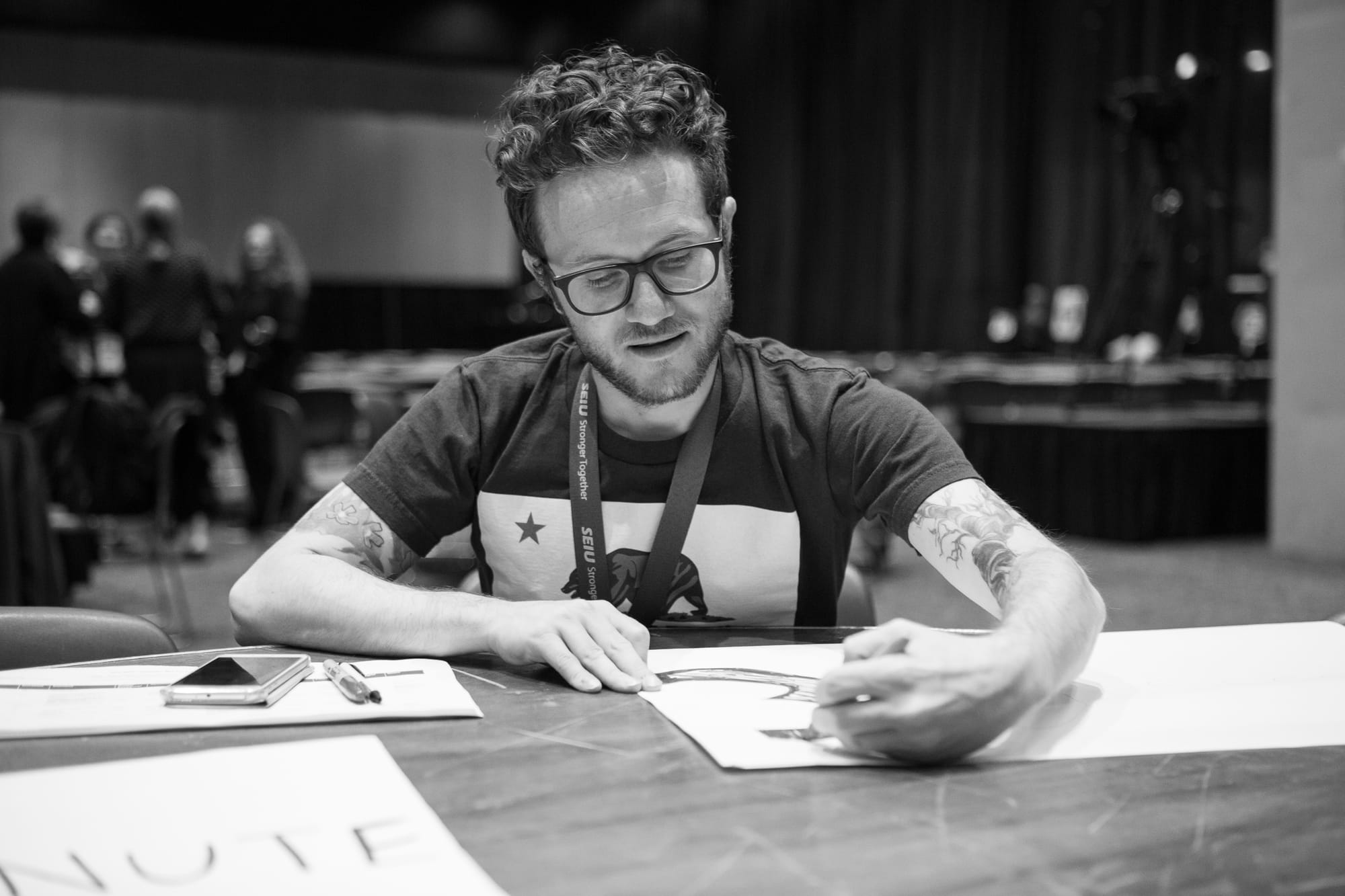 2020:8pm and making some noise. Taken on Clinton just north of Lexington in Oak Park, IL. In some neighborhoods - 8pm is a time when people come out and show solidarity: sometimes by singing and sometimes by just making noise. In some neighborhoods it has never caught on, in others it is sporadic and in some it remains a regular occurrence. We were walking in Oak Park and came along a block that continues t do it.2018:People. Taken on Front Street in Traverse City, Michigan. After days of seeing and posting photos of birds, porcupines, and trees, I went to Traverse City today. It was chilly, but that didn’t stop people from being out in the sun.2016:An art project for our Assembly. Taken in Cobo Hall in Detroit, MI2012:Cleaning under the tracks. Taken on Broadway Ave at Leland.