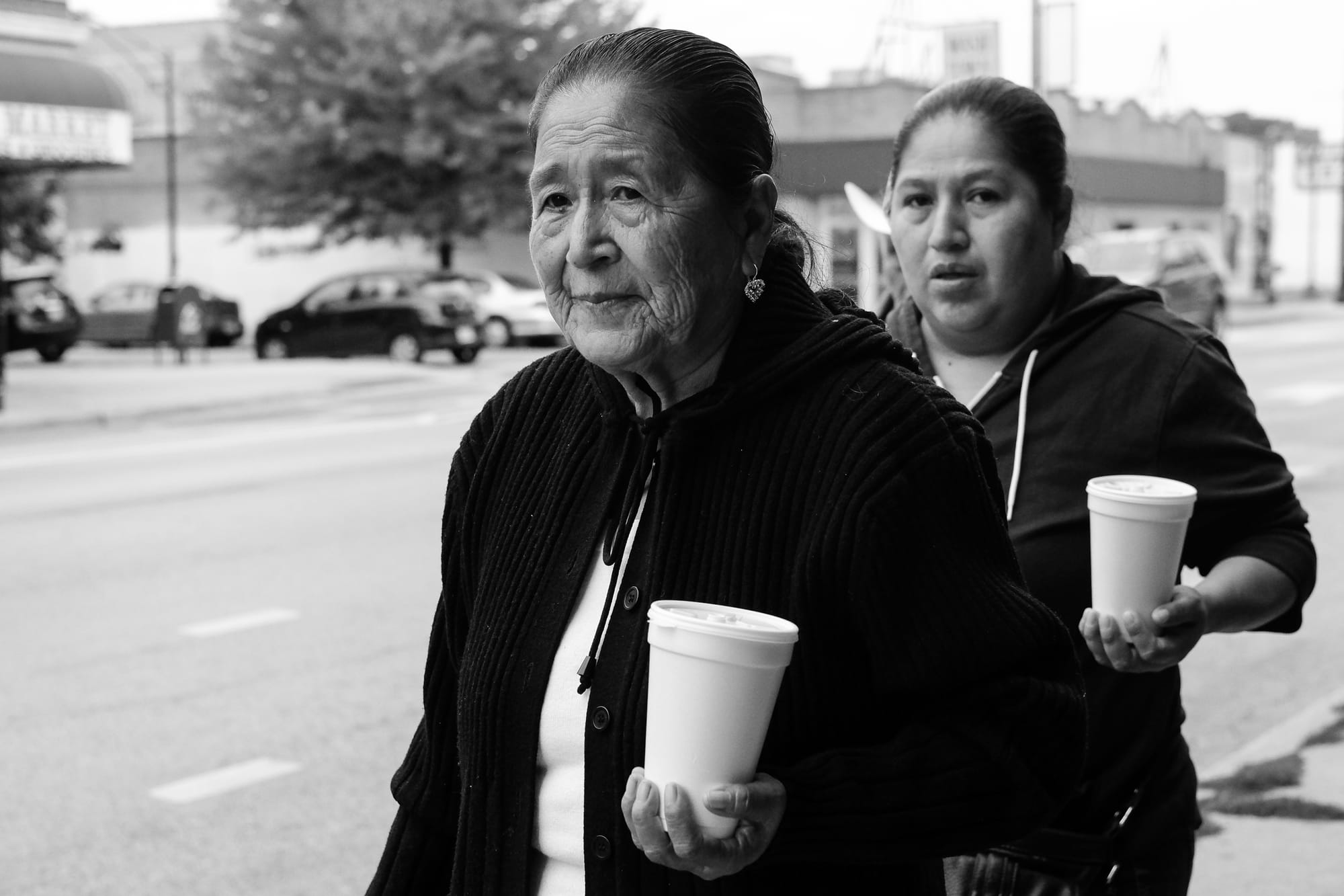 I took advantage of an absolutely beautiful Friday afternoon to go to Unabridged Books and then walk home. I took a number of photos that could have been posted here. I was almost home and had just crossed Damen when they were waiting for the light. I took a couple photos as they approached the intersection, and this one when he looked at me and we were so close!